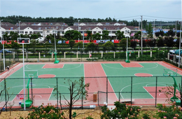 此次投入使用的籃球場(chǎng)均按照國際標(biāo)準(zhǔn)尺寸建設(shè),采用硅-PU地面,具有上硬下彈、緩沖減震、防滑起動(dòng)等特點(diǎn),既可以增加運(yùn)動(dòng)緩沖,減輕腳踝、關(guān)節(jié)、韌帶的傷害,又有效解決因地面受濕而引起的打滑現(xiàn)象,保證運(yùn)動(dòng)中腳感舒適,是一種健康型專業(yè)彈性合成球場(chǎng)地面系統(tǒng)?;@球場(chǎng)還配置了移動(dòng)式、配有機(jī)玻璃籃板和彈性籃圈的籃球架以及8組球場(chǎng)專用燈光設(shè)備。