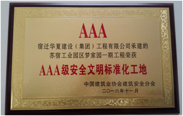夢家園獲得“AAA級安全文明標(biāo)準(zhǔn)化工地”稱號