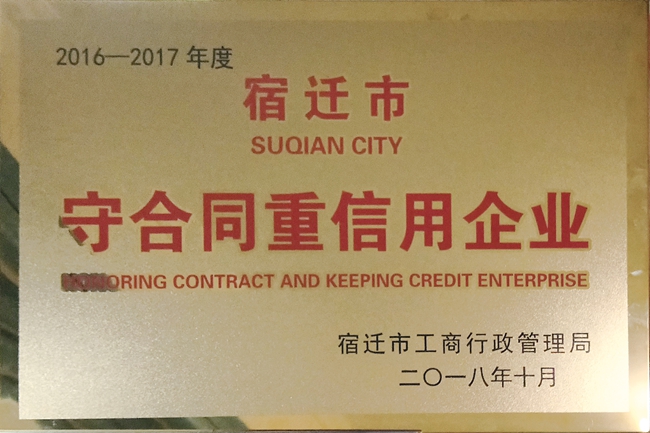 11月8日,宿遷市工商行政管理局召開2016—2017年度“守合同重信用”企業(yè)公示證書頒發(fā)暨宿遷市企業(yè)信用管理協(xié)會第四次會員代表大會,園區(qū)城發(fā)公司獲評宿遷市“守合同重信用” 企業(yè)榮譽稱號。
