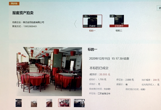 12月11日下午3時,城發(fā)公司部分報廢廚具、桌椅等物資網(wǎng)上拍賣開始,10家競買人,經(jīng)過17分39秒90次的緊張激烈競價,最終以20555元成交標的,比評估價超出10倍。