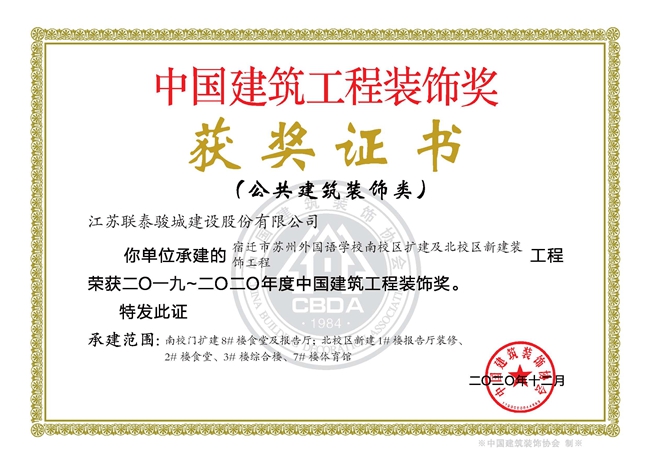 近期,傳來喜訊,由開發(fā)公司代建的宿遷市蘇州外國語學(xué)校南校區(qū)擴建及北校區(qū)新建裝飾工程獲得中國建筑裝飾行業(yè)最高獎項“中國建筑工程裝飾獎”。