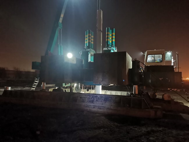 項(xiàng)目于2021年12月正式開工建設(shè),總樁長約4.7萬米。樁基工程是整個(gè)項(xiàng)目起步的關(guān)鍵工程,項(xiàng)目各參建單位緊密配合,面對(duì)時(shí)間緊、任務(wù)重、氣溫低、管控嚴(yán)等重重困難,施工不分晝夜,雨天依然堅(jiān)持施工,最終確保了進(jìn)度計(jì)劃的實(shí)現(xiàn)。