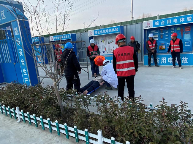 為消除事故隱患,筑牢施工現(xiàn)場的安全防線,提升施工現(xiàn)場安全生產(chǎn)及事故應急響應及處置能力,2月16日下午,青年公寓一期項目在工地辦公區(qū)北側(cè)開展了2023年度高處墜落及觸電傷害應急演練,項目各方共計約40余人參與了本次演練。