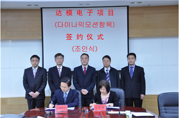 4月24日下午,韓國(guó)達(dá)模電子項(xiàng)目簽約儀式在園區(qū)舉行,標(biāo)志著首家韓資企業(yè)正式落戶園區(qū),副市長(zhǎng)、園區(qū)黨工委書記、管委會(huì)主任顧玉坤、省蘇北辦副主任黃建東、園區(qū)黨工委委員、管委會(huì)副主任蔡軍、韓國(guó)達(dá)模電子公司董事長(zhǎng)尹貞?zhàn)┑瘸鱿灱s儀式,園區(qū)黨工委委員、管委會(huì)副主任丁琦主持簽約儀式。