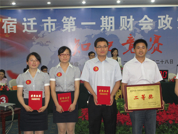 6月28日,宿遷市第一期財(cái)會(huì)政策法規(guī)知識(shí)競(jìng)賽在國際飯店舉行,經(jīng)過激烈的角逐,園區(qū)財(cái)政局代表隊(duì)獲二等獎(jiǎng)。