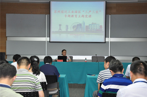 8月5日下午,園區(qū)工委副書記、管委會副主任駱敏為園區(qū)機關(guān)事業(yè)單位、國資國企黨員講了一堂“三嚴(yán)三實”專題黨課。