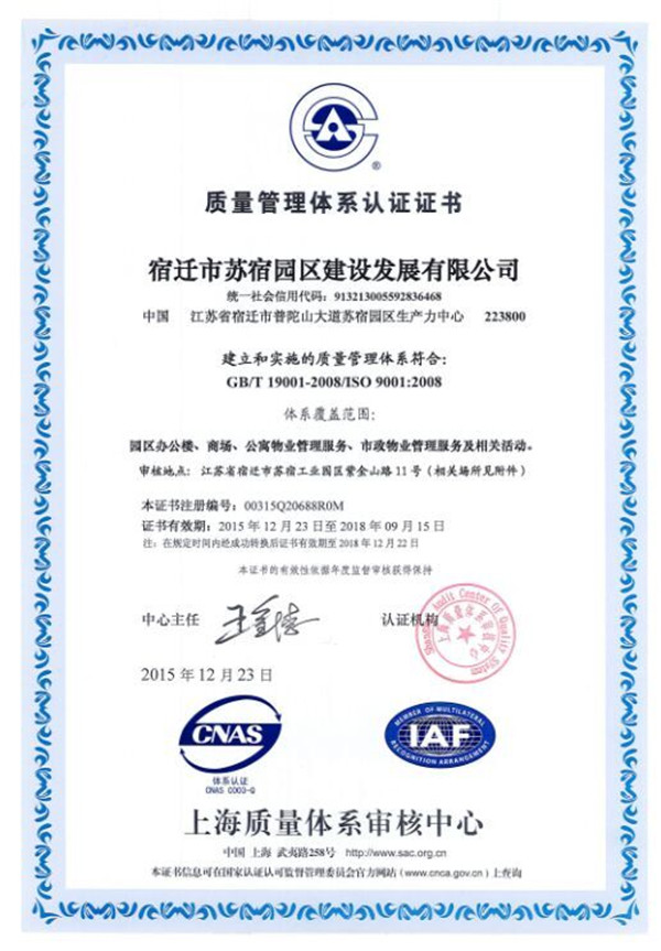 近期,園區(qū)建發(fā)公司正式獲得由上海質(zhì)量認(rèn)證中心頒發(fā)的ISO9001質(zhì)量管理體系認(rèn)證證書(shū)。