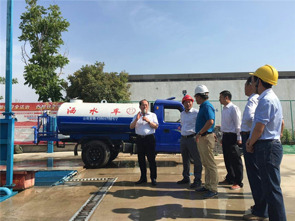 觀摩中,李榮錦對園區(qū)揚(yáng)塵治理工作給予了高度評價,對現(xiàn)場自動沖洗設(shè)施、灑水車、文化教育長廊、施工展示區(qū)等一系列先進(jìn)做法表示充分肯定,并要求在全市范圍內(nèi)推廣。